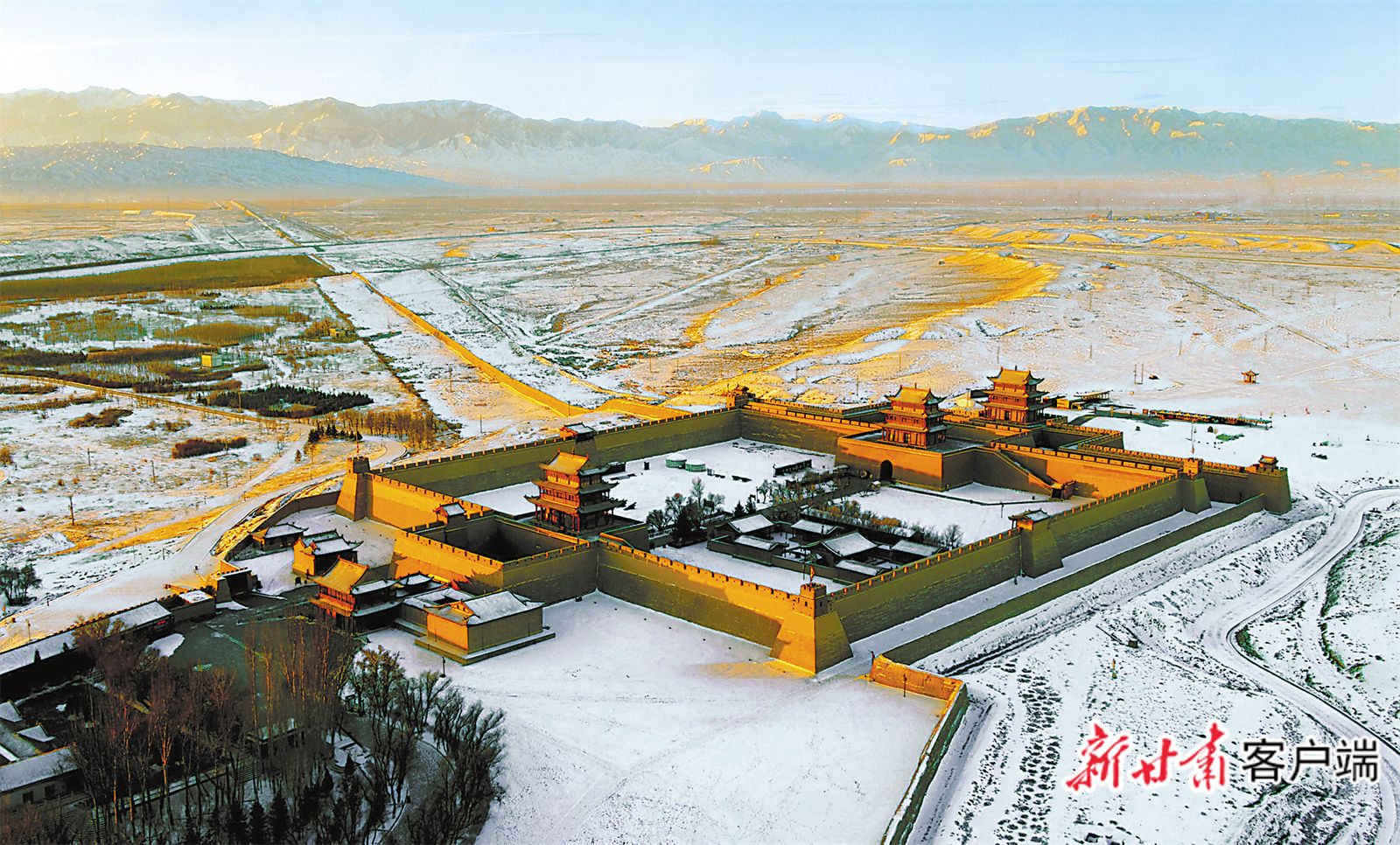 晨光中的嘉峪关城雪景别样。新甘肃·甘肃日报通讯员 毛富