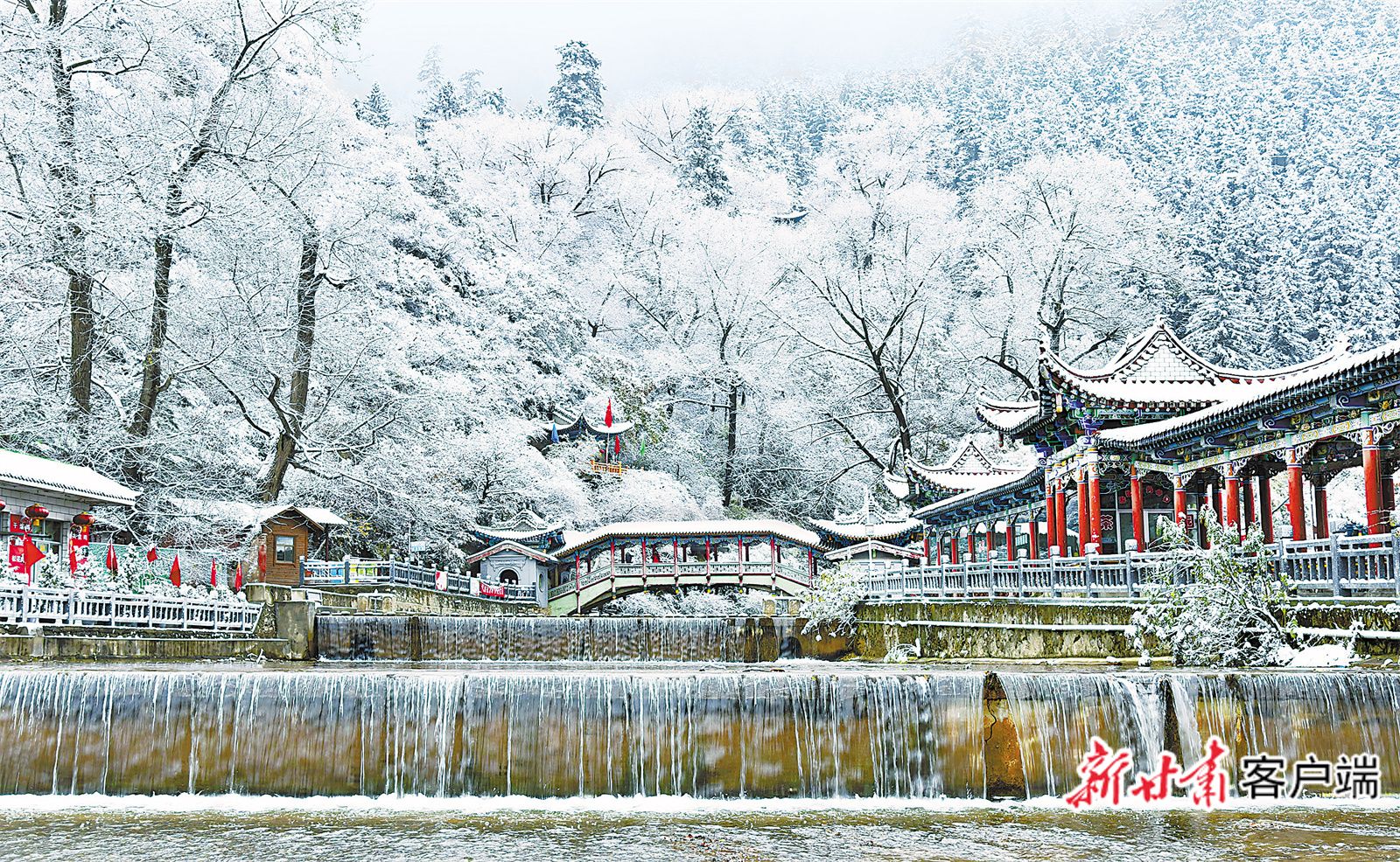 一场春雪把兴隆山装扮得银装素裹。新甘肃·甘肃日报通讯员 陈旭东