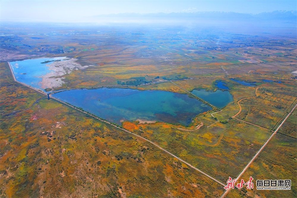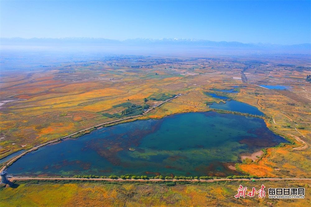 9月25日,位于嘉峪关市东北部的新城草湖国家湿地公园,天然的湿地,茂密的植被、纵横交错的田野、芦苇、湿地在金秋美丽的阳光辉映下,尽显秋色美景,构成了一幅金色的美丽画卷。