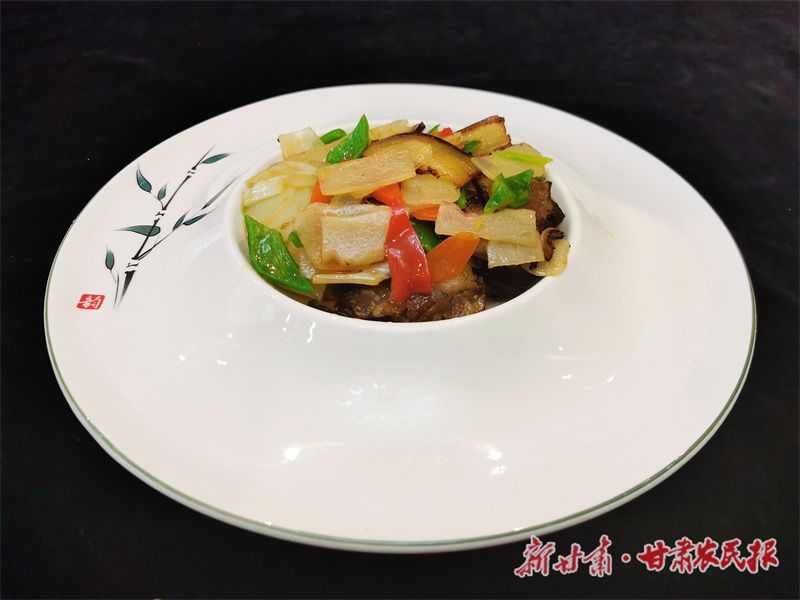 鲜天麻片炒腊肉(鲜天麻、腊肉、青红椒)