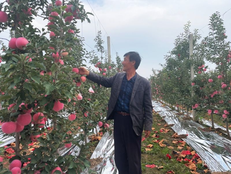 章宏岐查看苹果着色情况(央广网发 景洁 摄)