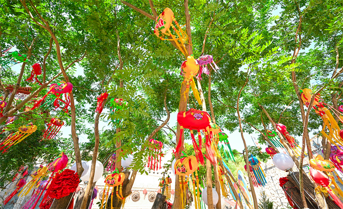 香包,古名香囊,主要功能是求吉祈福、驱恶辟邪。庆阳香包形成于公元前两千三百多年,《黄帝内经》中就有记载,是中国国家地理标志产品。你看,药王洞养生小镇树上“长”出了香包。
