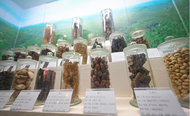 博物馆内陈列有各种药材,生动展示了岐黄中医药文化的博大精深。