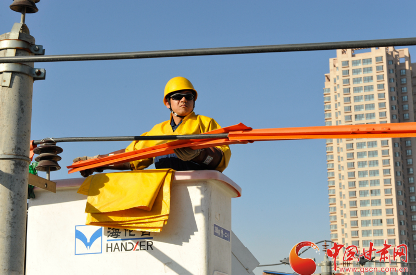 走进国网兰州供电公司配网中心带电作业现场,几辆带电作业车有序停靠在训练场上,宋军光正在对作业人员进行着培训,晒得黝黑的脸庞充满坚毅和认真。