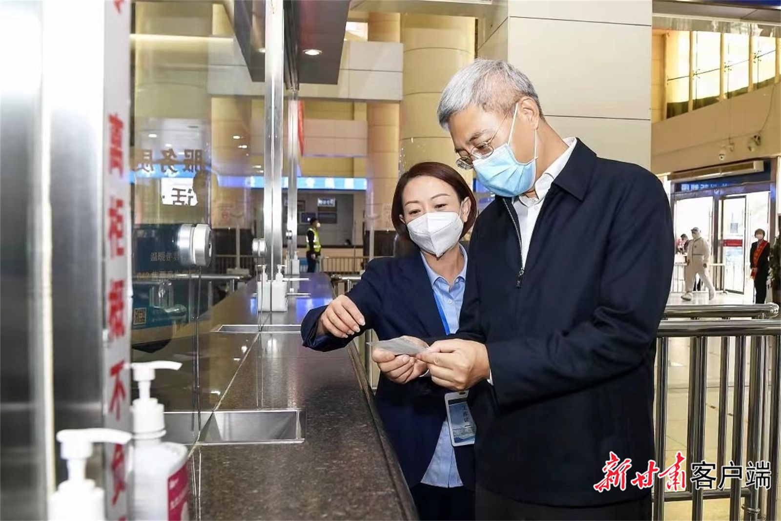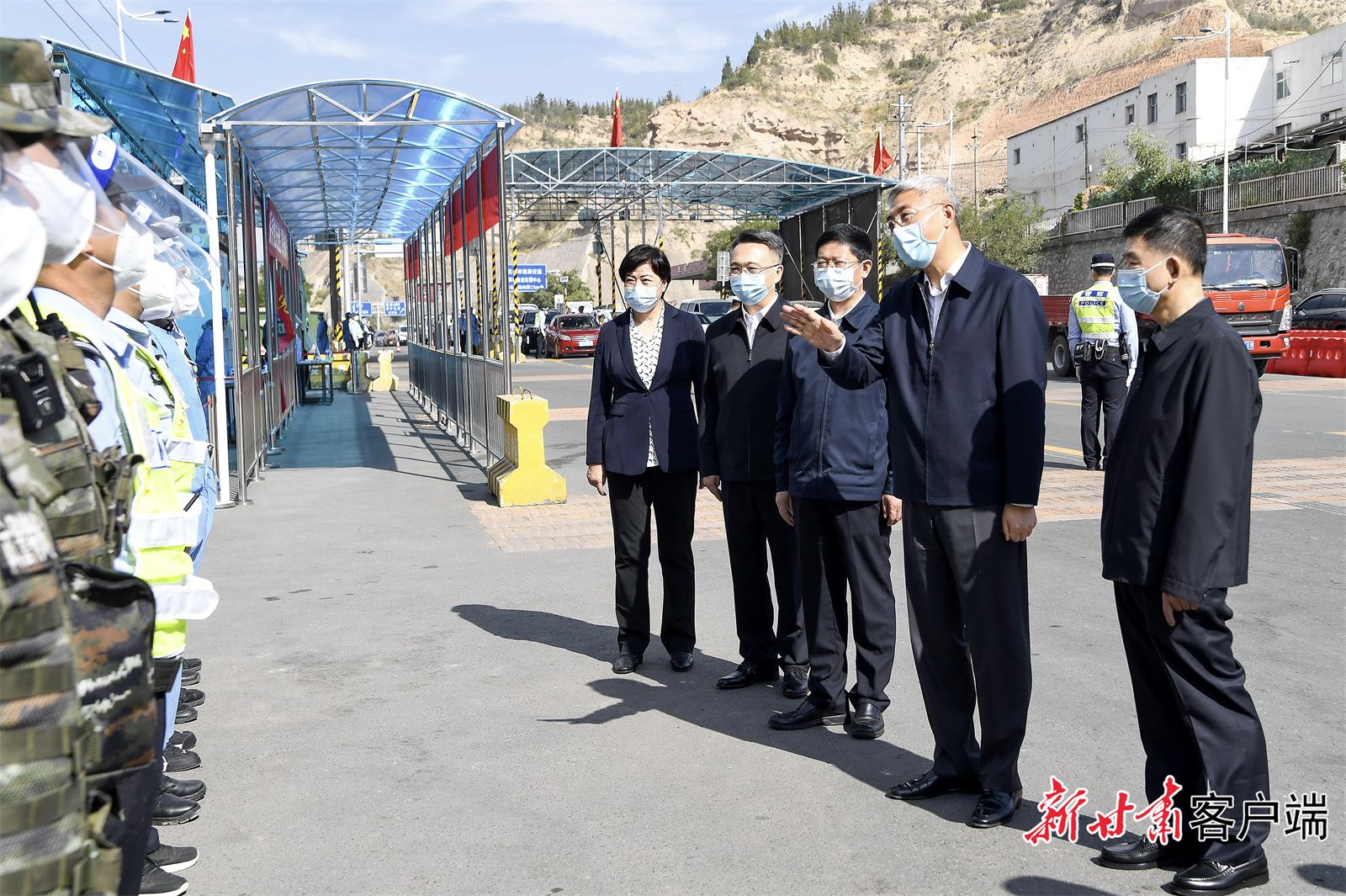 10月1日,省委书记、省人大常委会主任尹弘在兰州市调研检查国庆节期间疫情防控、安全稳定等工作,看望慰问一线值班值守人员。新甘肃·甘肃日报记者 高 樯