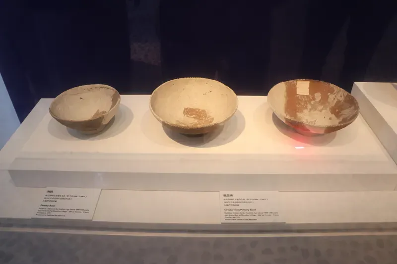 大地湾遗址出土的陶碗和圆足碗(距今约7800-7300年)。郭林玉 摄