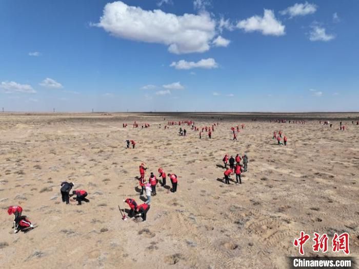 图为压沙植树现场。武威市融媒体中心供图