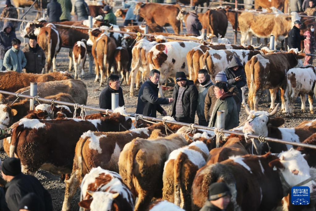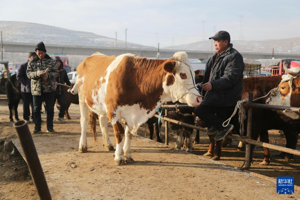 12月6日,人们在甘肃省定西市安定区李家堡镇的牲畜交易市场交易。新华社发(王克贤摄)