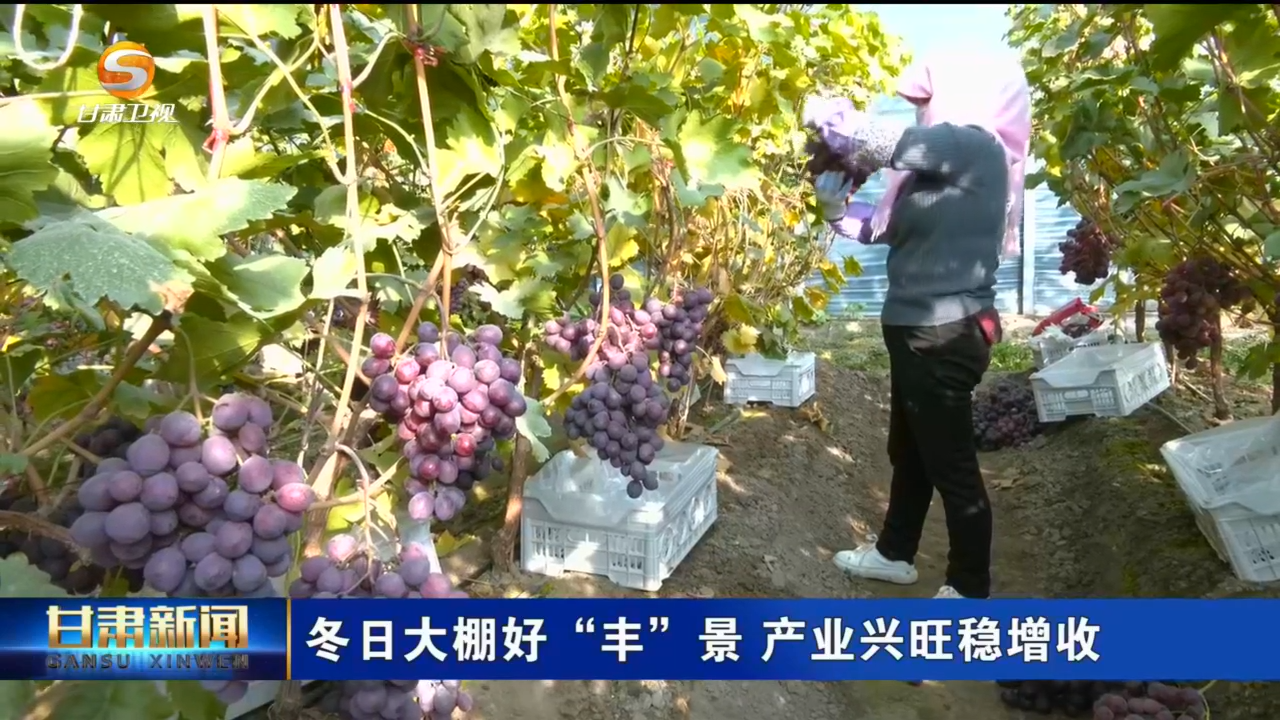 在武威市凉州区的鲜食葡萄产业园大棚内,一串串葡萄压满枝头,种植户们来回穿梭在藤架下,采摘、分拣、打包、装箱。