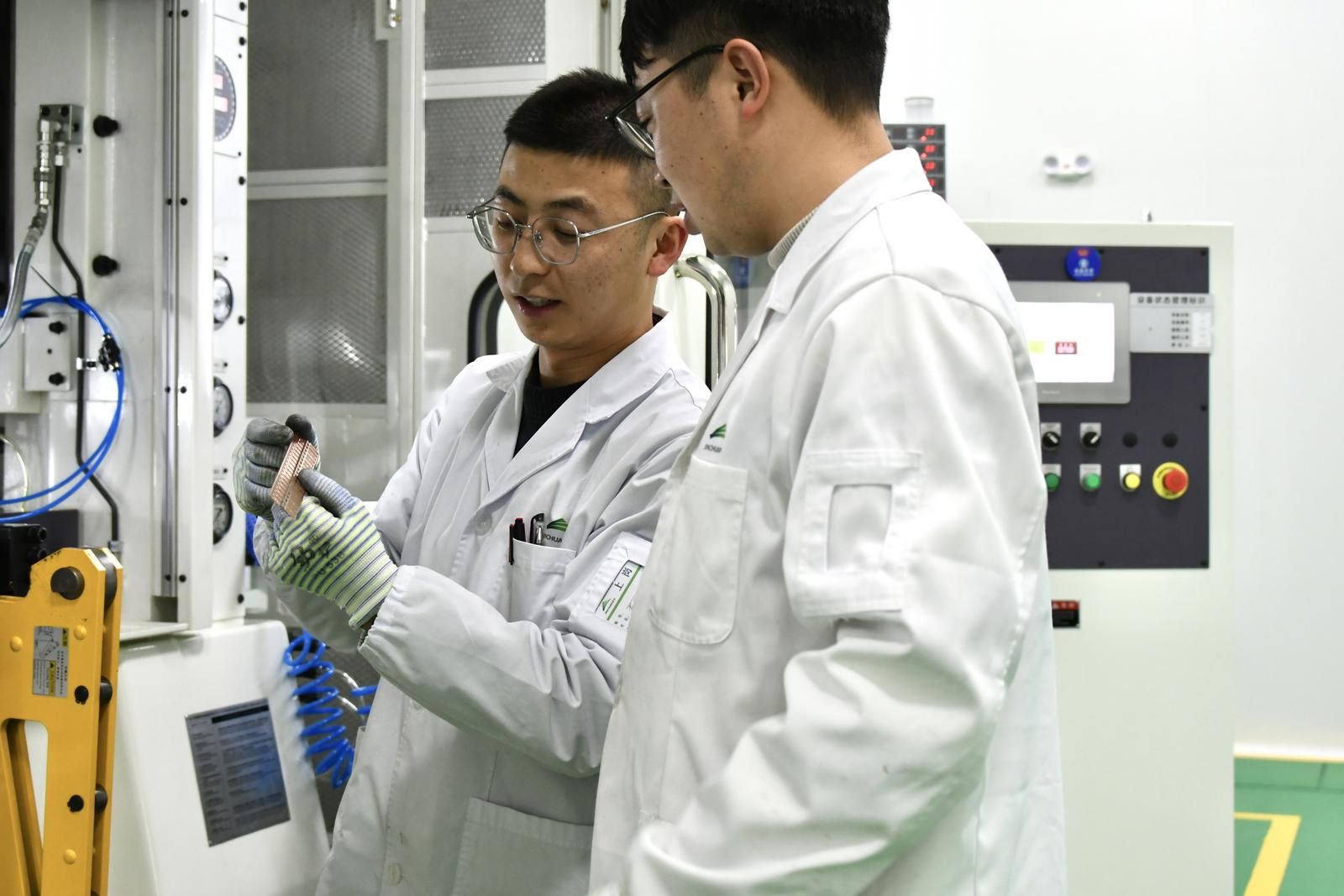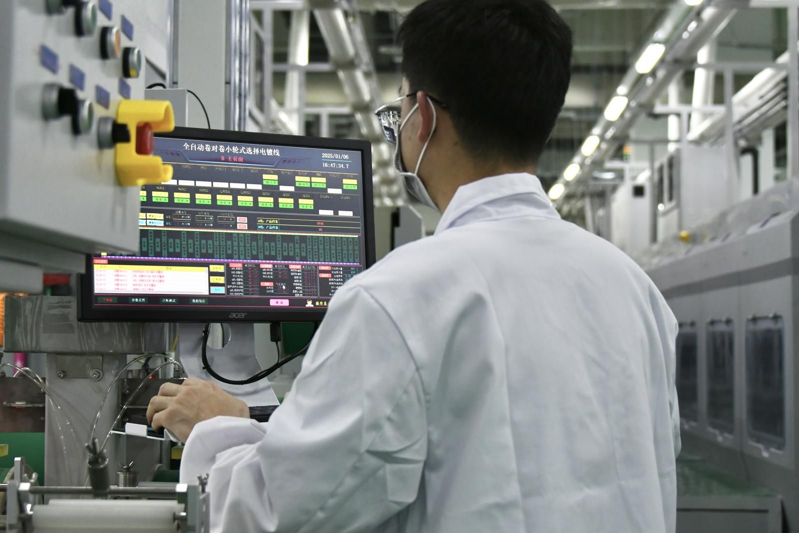 来到位于生产线前端的清洗线铜带上料区,王世卓告诉记者,企业用于生产的核心设备全部都是国外进口,对标的是新加坡ASM的先进产线,极大地提高了企业的生产效率,工人们只需要负责上下料、及时供应所需材料,确保设备正常运转。