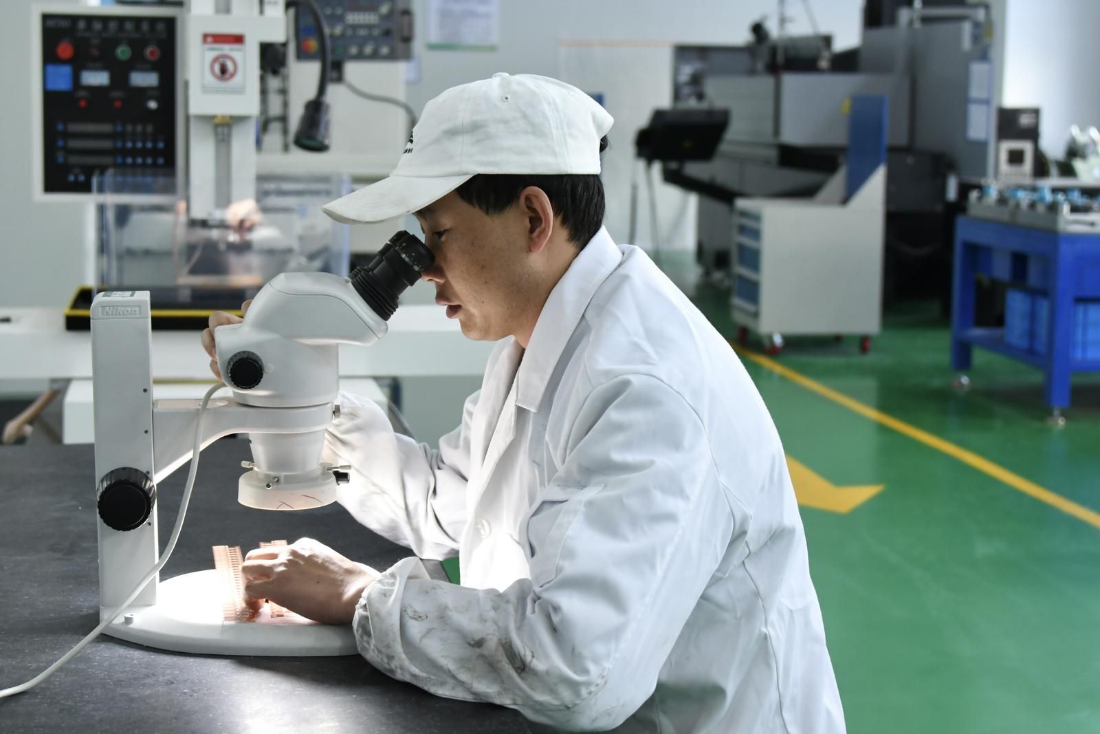 走进蚀刻产品物理外观质检室,质检员正通过电子显微镜检查生产的集成电路蚀刻型引线框架的外观和尺寸。“我们的每一条产线都有在线CCD智能检测仪,替代人工监视实现一人看守多机,降低企业用工成本。”金川兰新总经理王世卓介绍道。