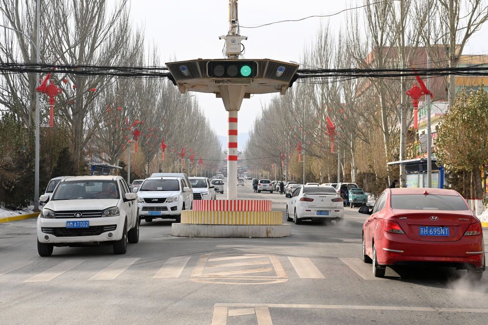 玉门老市区十字路口重新投入使用的红绿灯。新华社记者 范培珅 摄