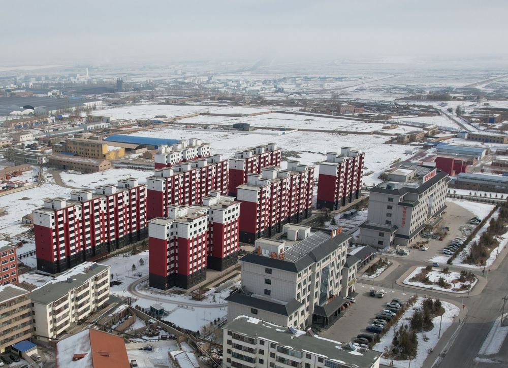 玉门老市区一处新建成的住宅小区。新华社记者 张睿 摄