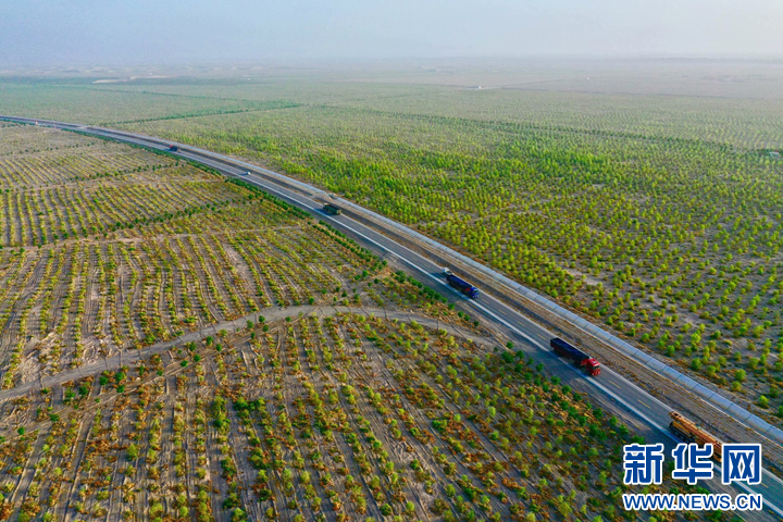 金塔县环城防护林网(资料图)。金塔县林业和草原局供图