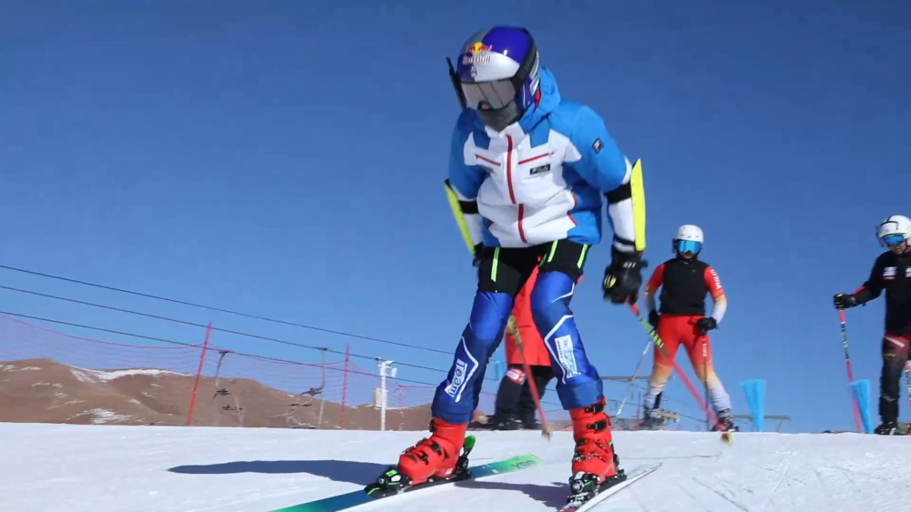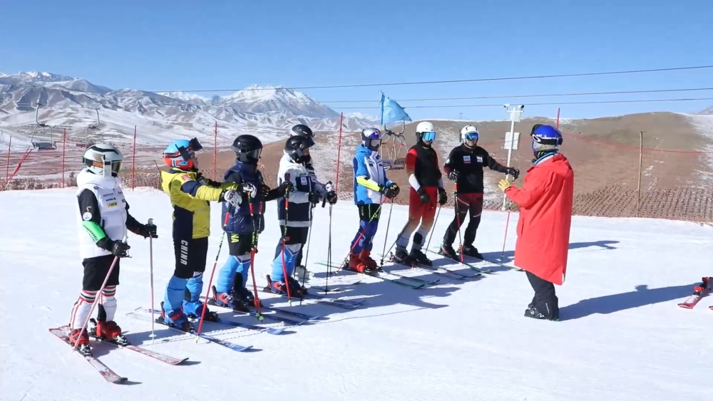 孙铭在雪场参加为期两周的滑雪训练,他的滑雪教练是来自东北的王旭有。作为滑雪项目国家高级教练、国家级裁判,自2019年以来,王旭有一直在甘肃开展滑雪教学、裁判培训等冰雪运动推广活动。
