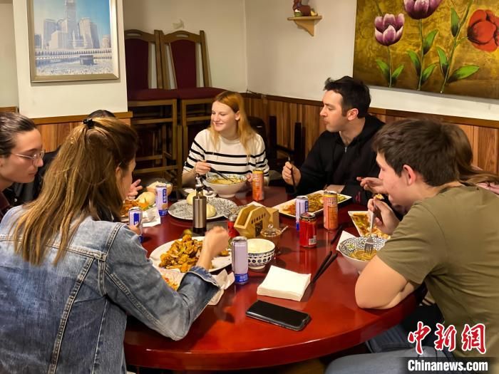 顾客在塞尔维亚印象兰州牛肉面馆吃拉面。(受访者供图)