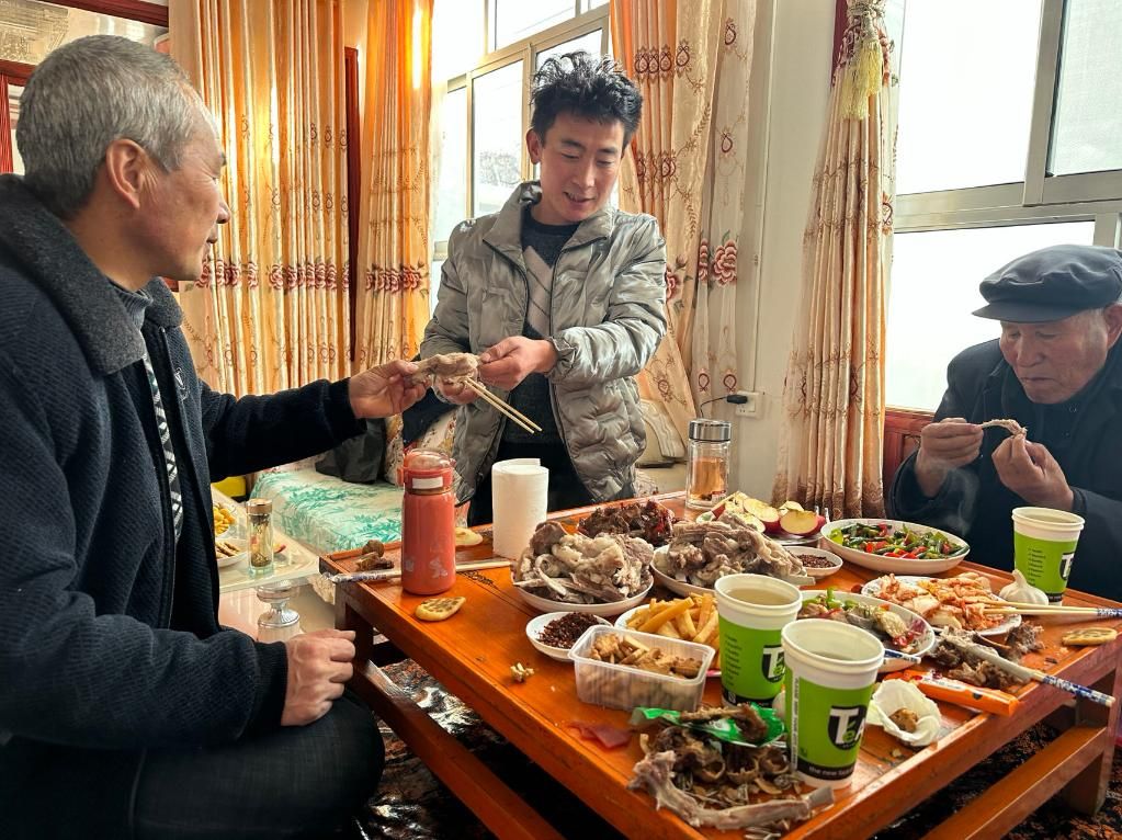 2025年1月18日,柴永忠(左一)和家人一起吃饭。新华社记者张文静 摄