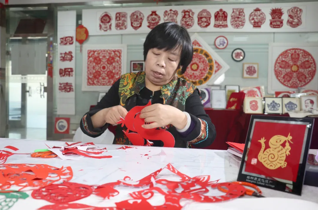 马路是庆阳剪纸市级代表性传承人,记者来到她的工作室,推开门的瞬间,映入眼帘的就是一幅幅精美的剪纸作品。马路向记者介绍,过春节,剪、贴窗花是庆阳民间传统习俗,2025年恰逢农历乙巳蛇年,她创作了一系列蛇元素剪纸作品。