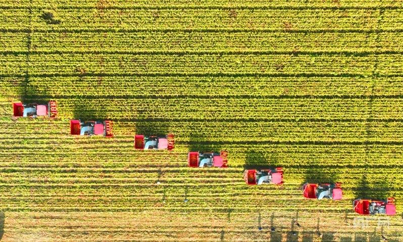 制种玉米机械化收割(央广网记者 魏晋雪 摄)