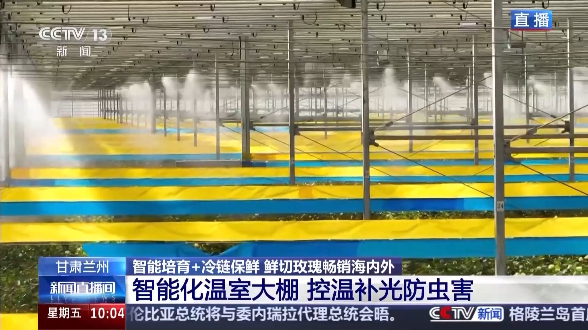 总台记者 崔林欣:在甘肃省兰州新区现代农业示范园花卉产业基地,在我的身旁有一些不同品种的玫瑰花已经开放,各式各样盛放的玫瑰,让整座温室大棚显得非常壮观。兰州新区的花卉智能温室是目前西北地区最大的鲜切玫瑰繁育基地。
