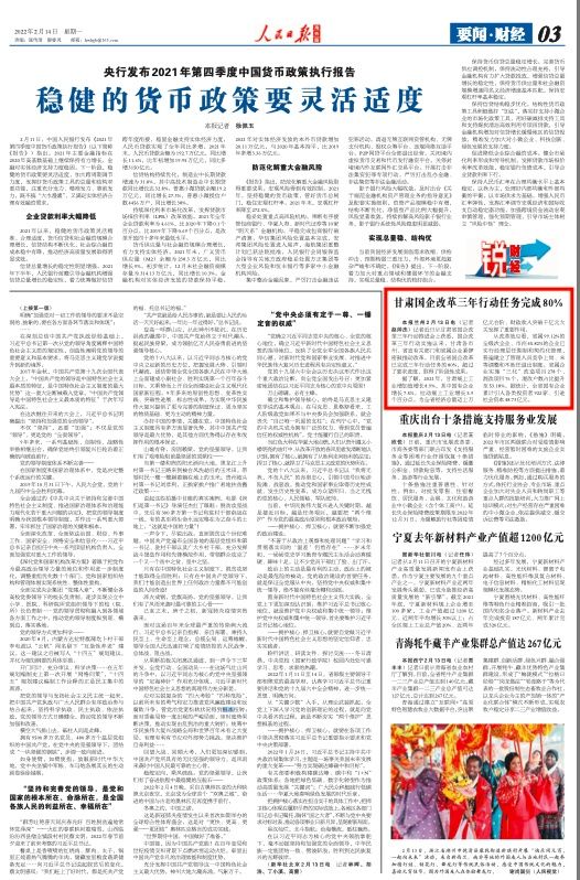 人民日报海外版:甘肃国企改革三年行动任务完成80%