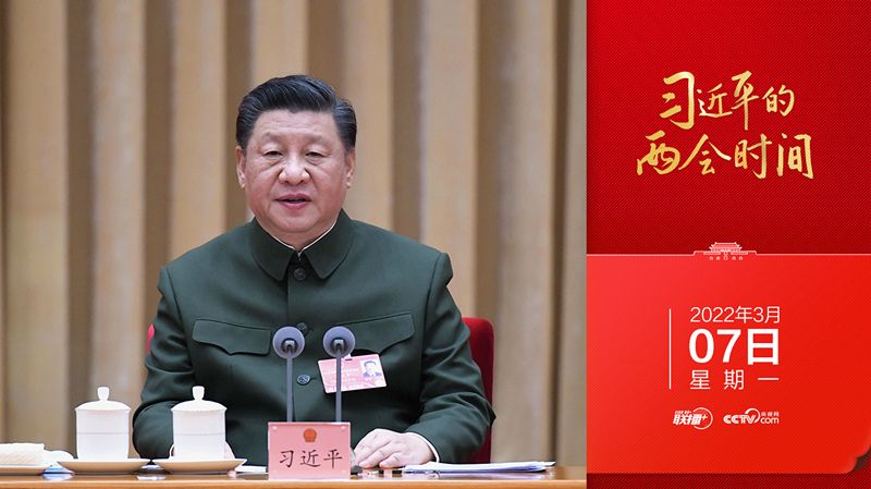 3月7日下午,中共中央总书记、国家主席、中央军委主席习近平出席十三届全国人大五次会议解放军和武警部队代表团全体会议。