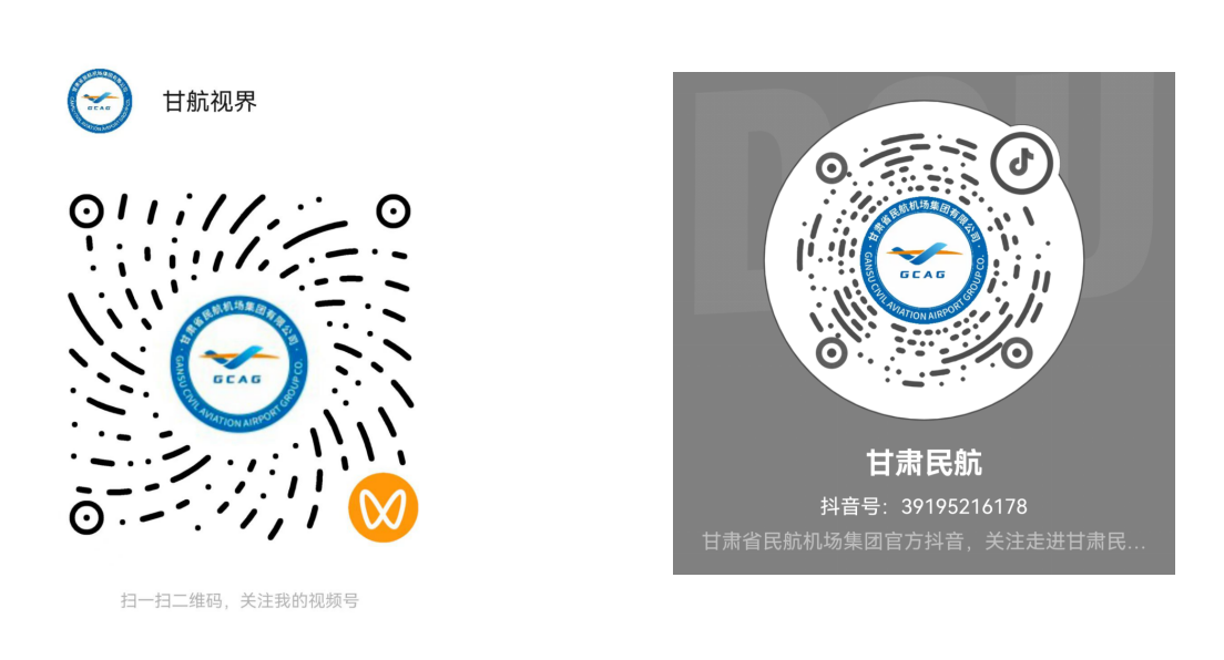 请扫描下方二维码关注甘肃省民航机场集团官方视频号、抖音号,找到相对应的视频进行点赞。