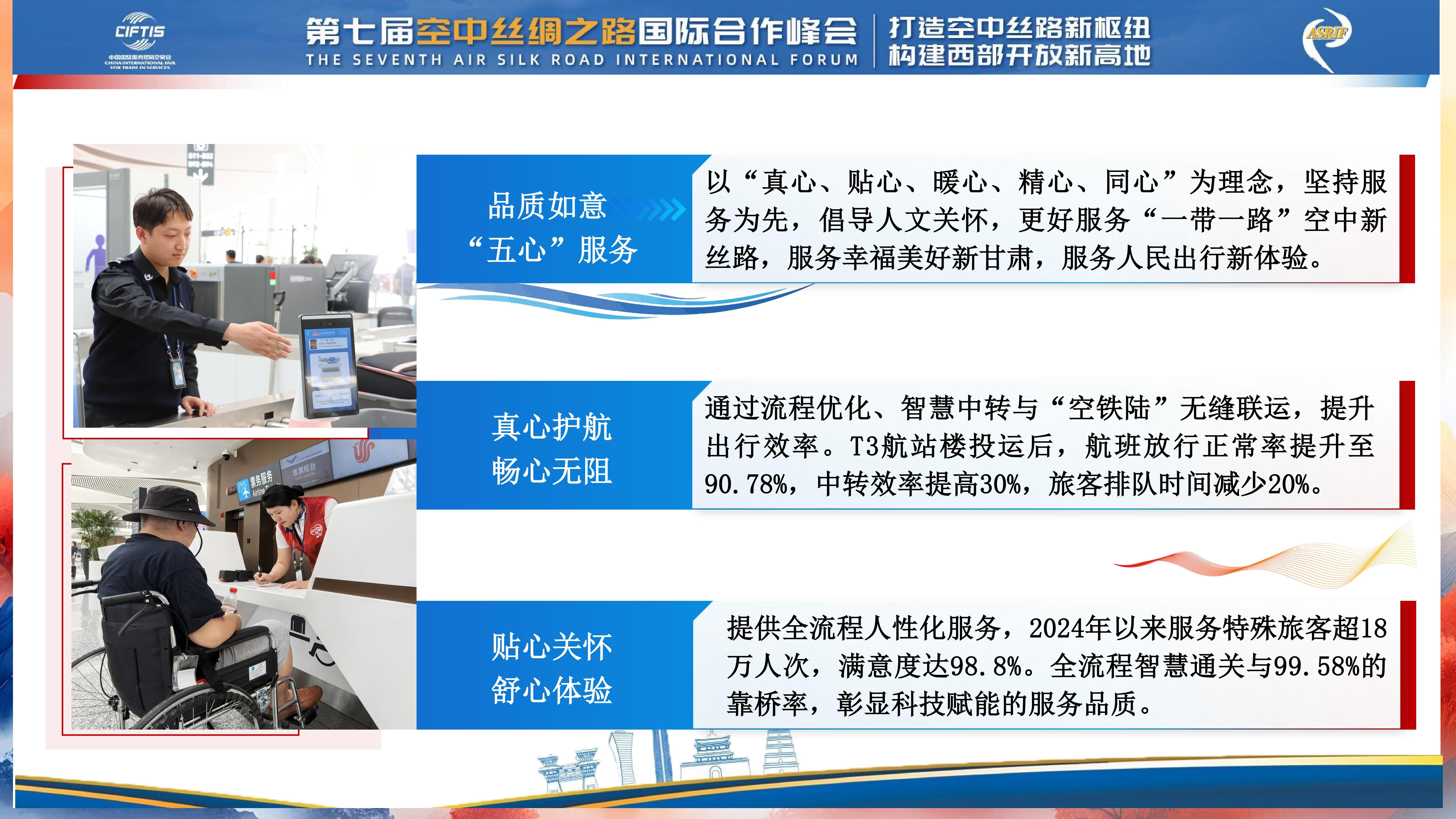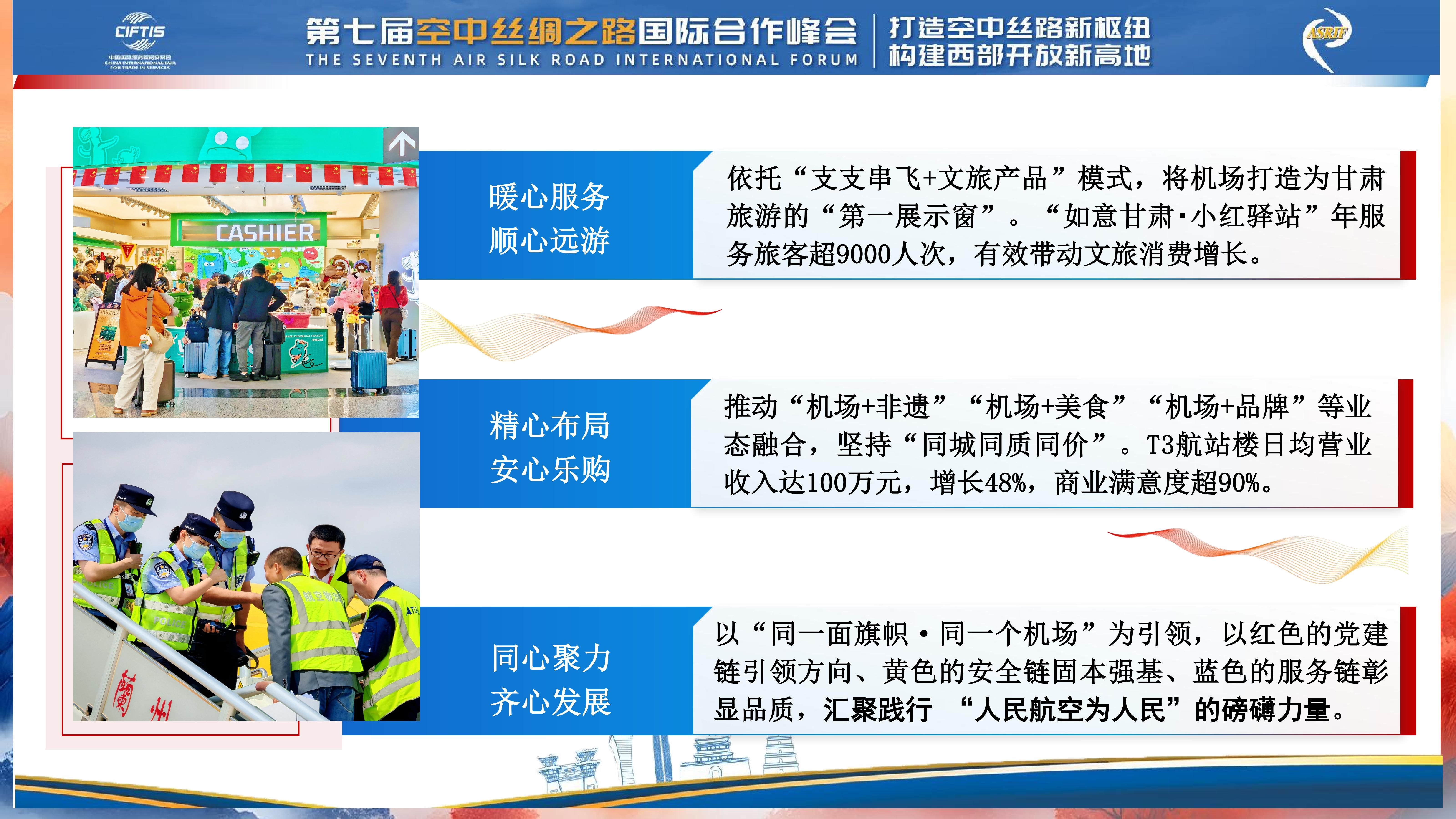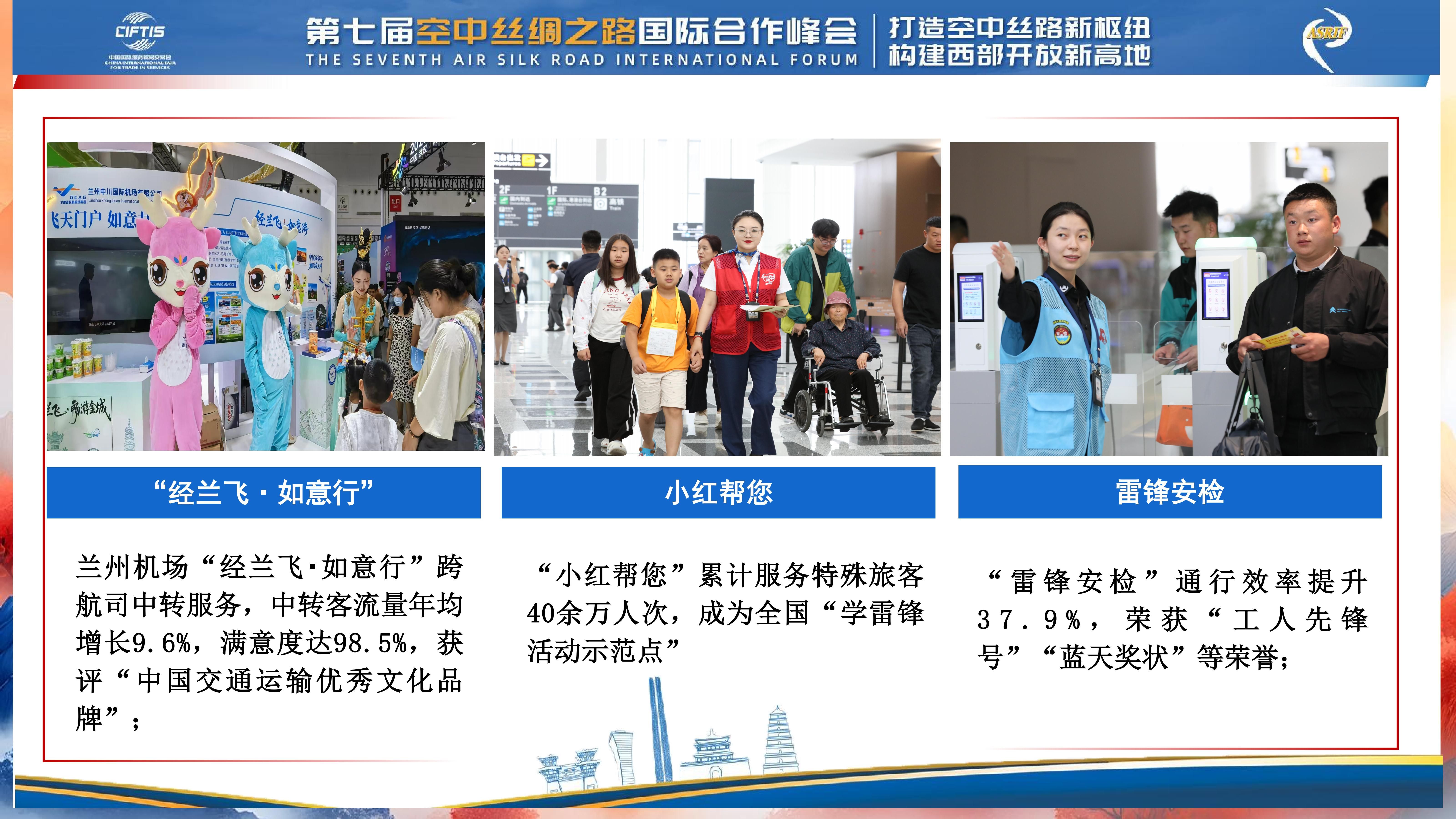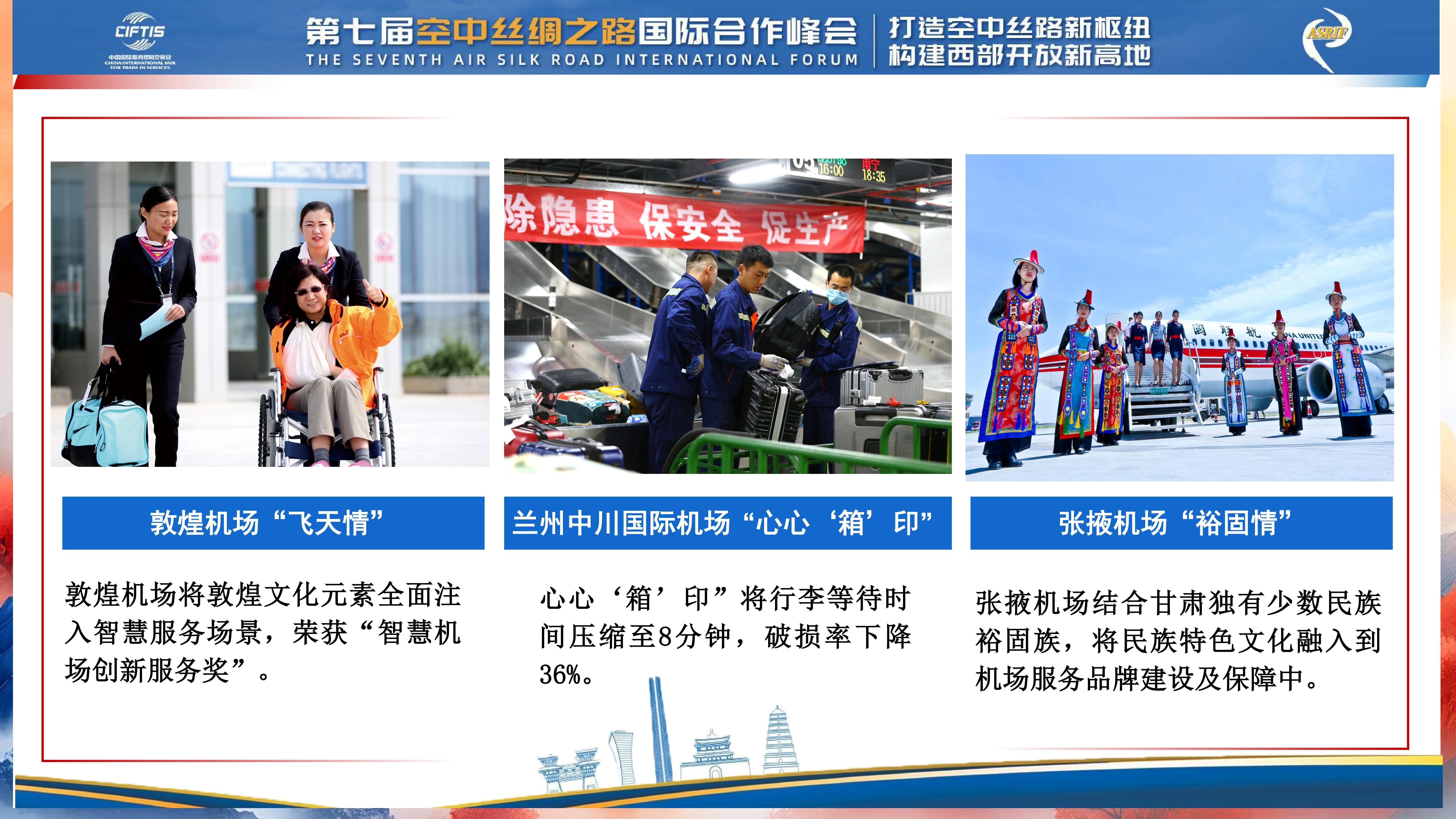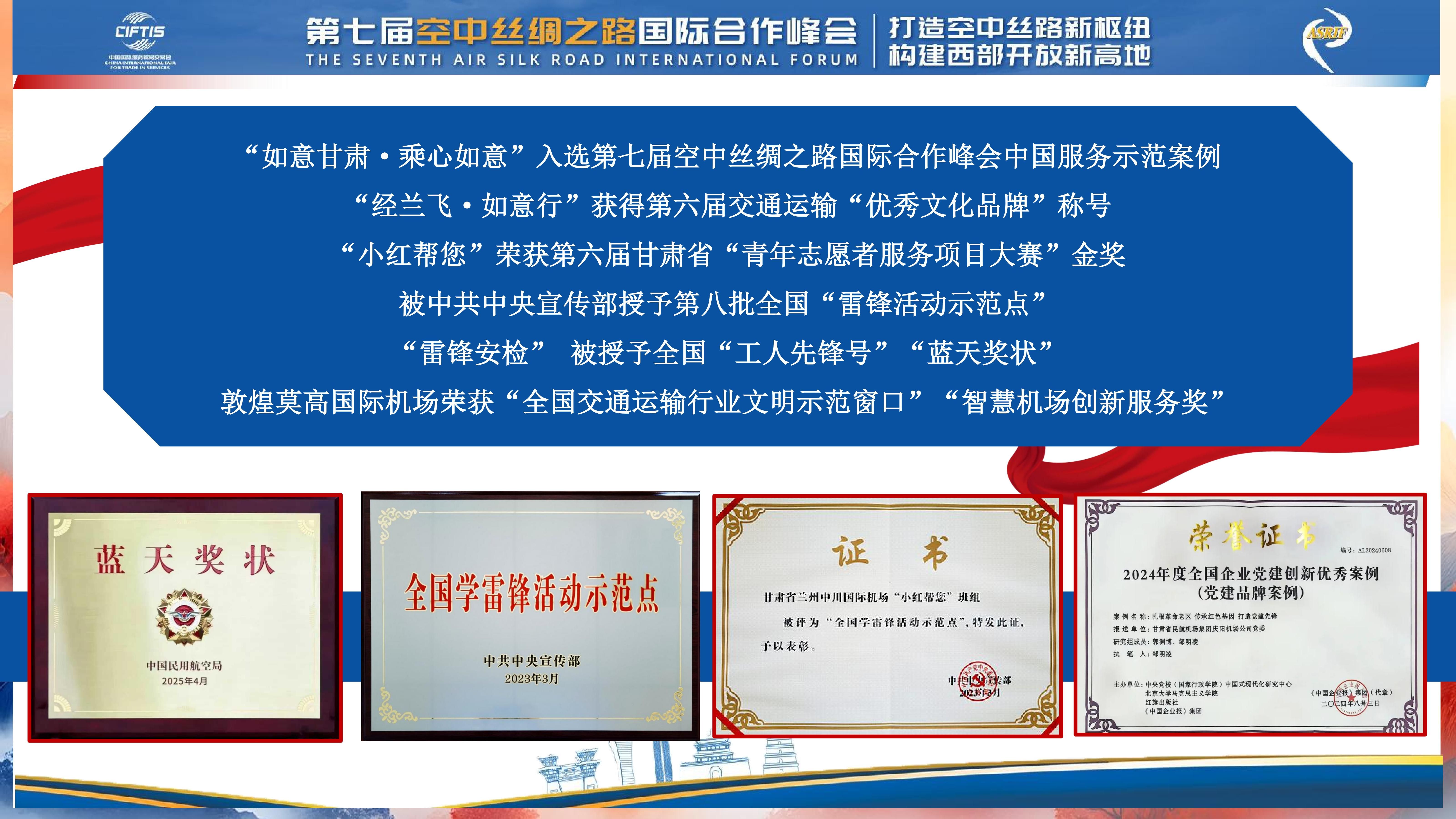 甘肃省民航机场集团“如意甘肃・乘心如意”服务品牌获评“空中丝绸之路”建设服务示范案例。