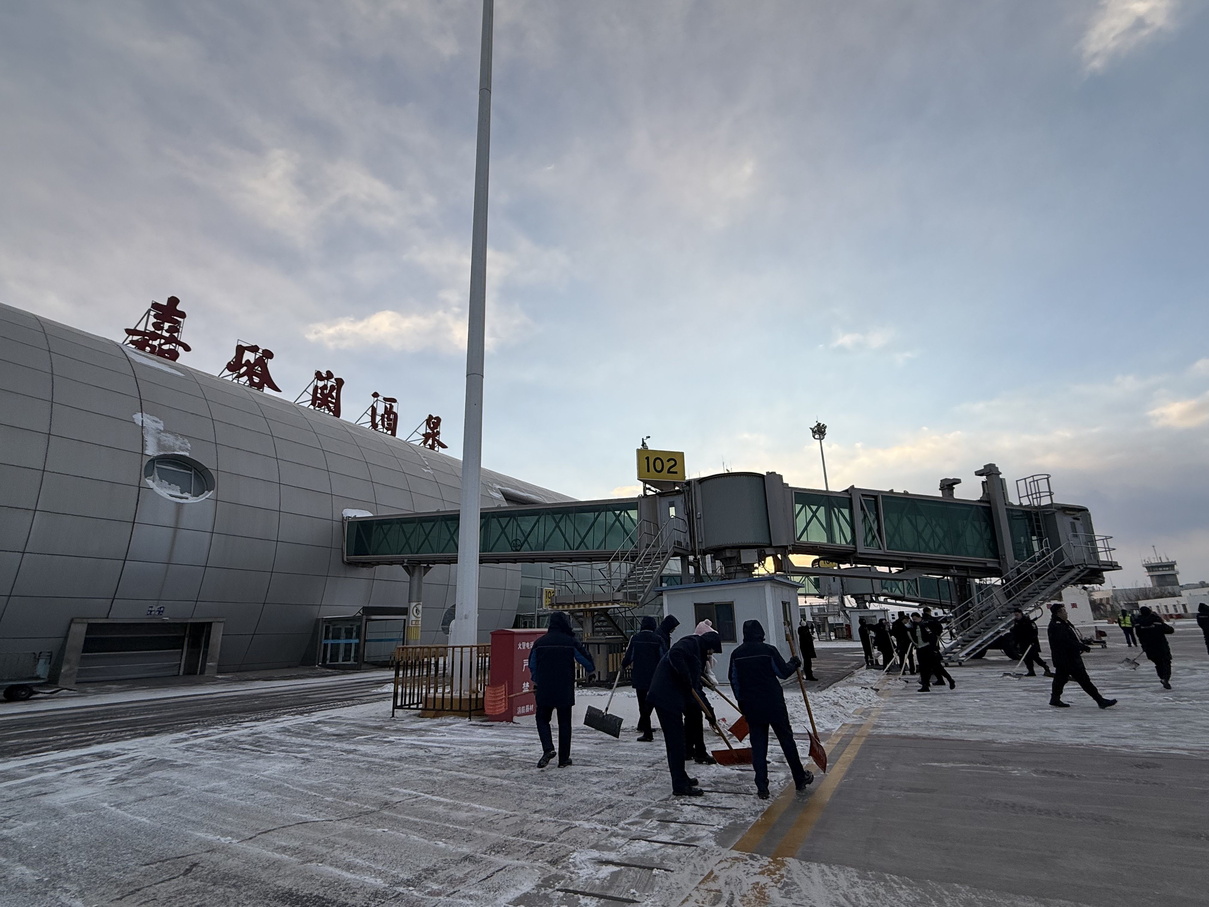 12月12日,嘉峪关机场工作人员对机坪地面进行除雪作业。秦彤瑶 摄