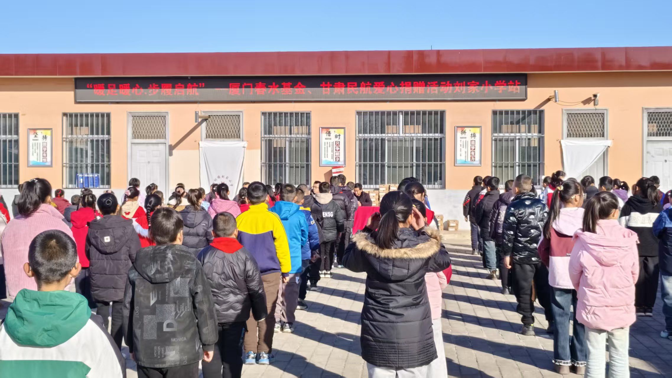 1月12日,厦门春水爱心基金会联合甘肃省民航机场集团驻村工作队在刘家小学开展爱心捐赠活动。