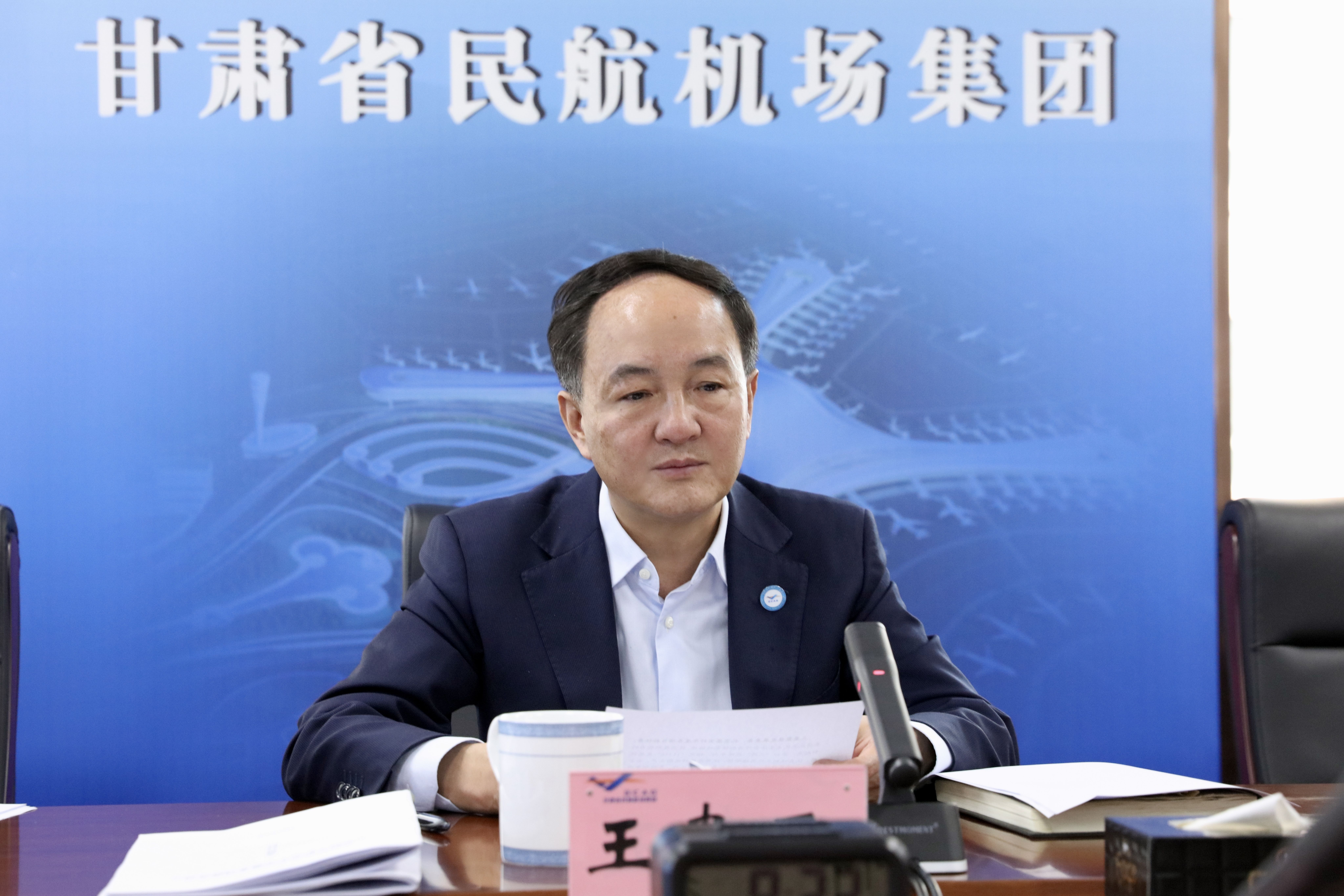 1月22日,甘肃省民航机场集团党委书记、董事长王贵玉主持会议。马凡婷 摄