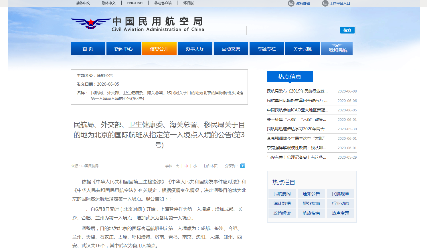↑中国民航局网站截图