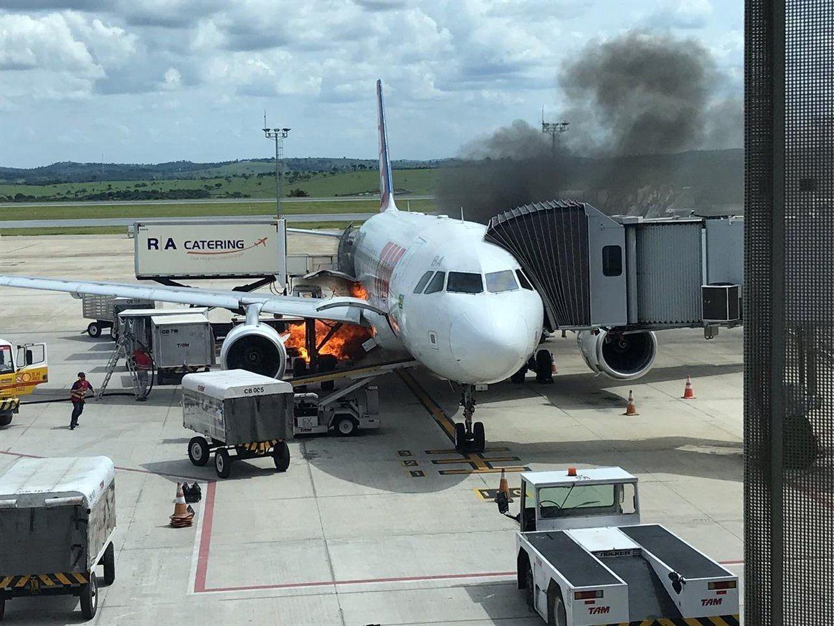 巴西一机场飞机行李卸载时行李传送带上发生火灾