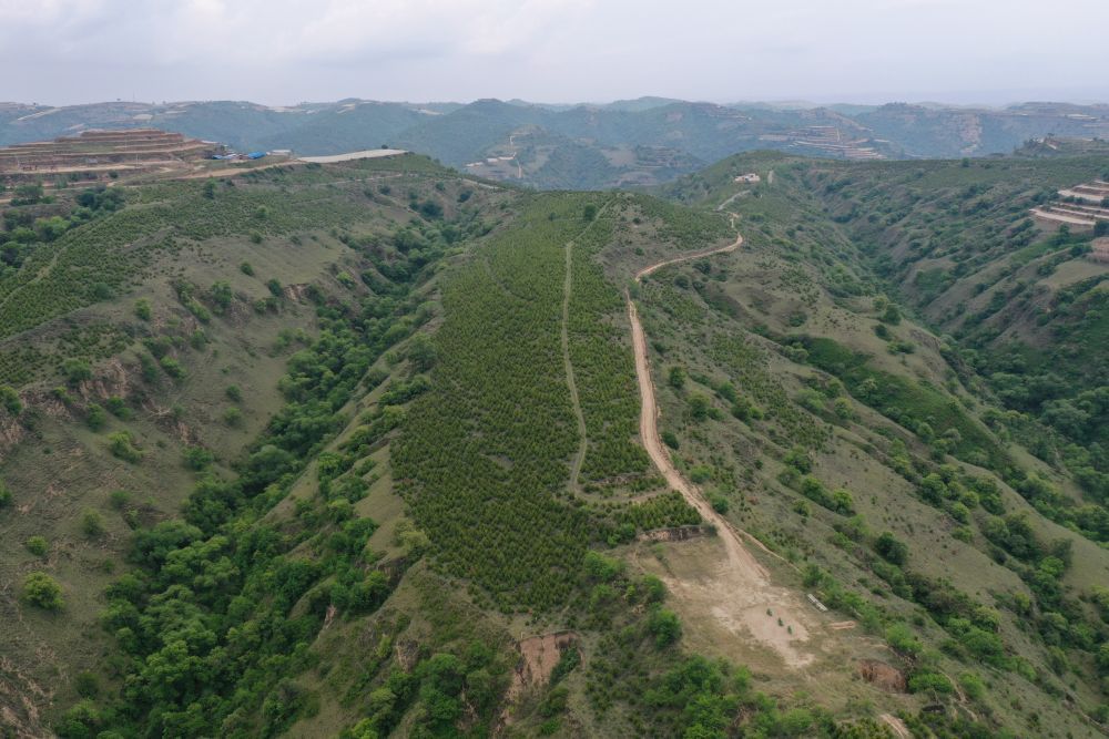 这是5月25日拍摄的甘肃省庆阳市华池县南梁镇高台村万亩苗林示范点景象。新华社记者 陈斌 摄