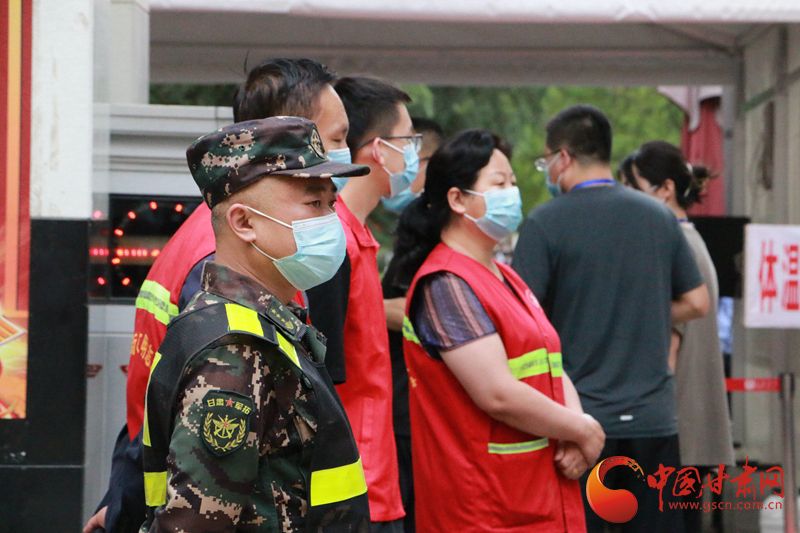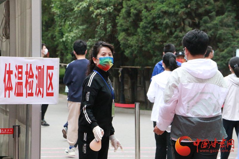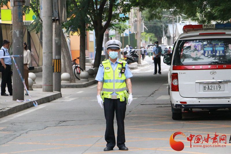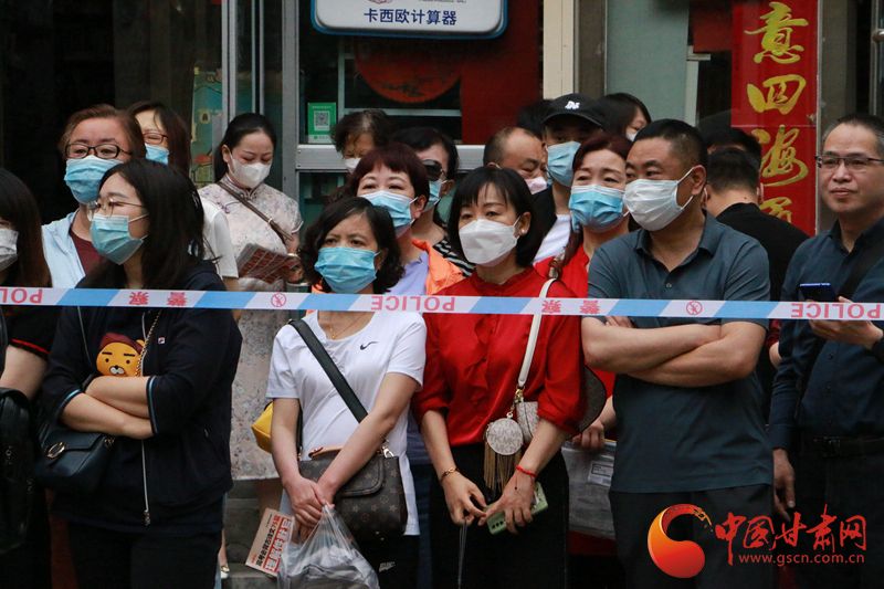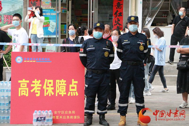6月7日上午,西北师范大学附属中学考点外,2022全国高考第一场语文考试中,等待考生走出考场的家长们。