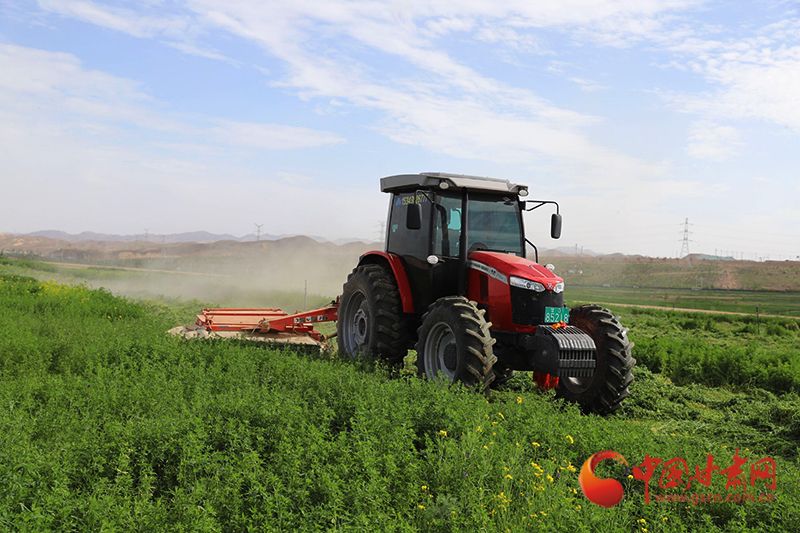 芒种时节,草木葱茏,水阜河的苜蓿进入了收割期。眼下水阜河项目现场,连片的苜蓿流青溢翠、清香扑鼻,轰鸣的收割机在田间穿梭,一派丰收景象。