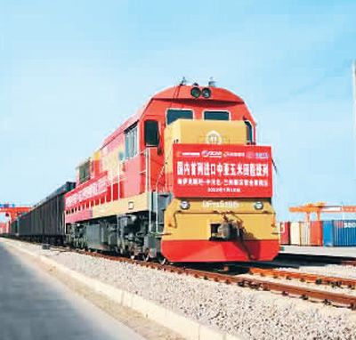 国内首列进口中亚玉米回程班列到港兰州新区中川北站物流园。