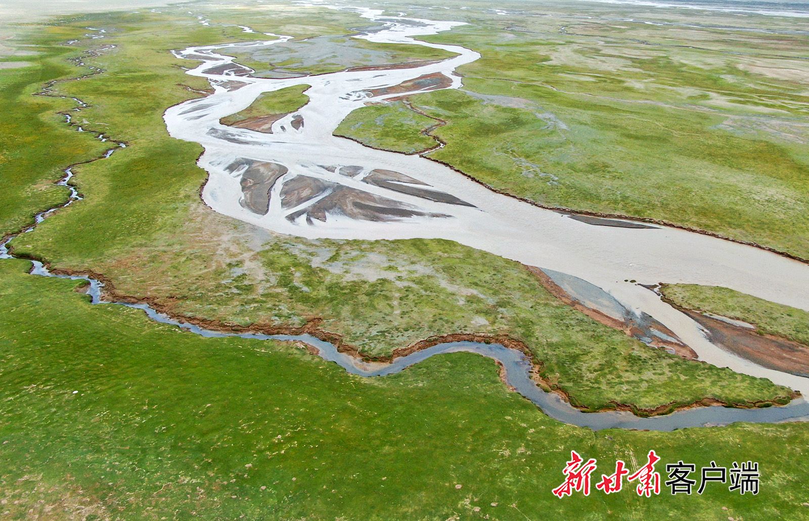 盛夏,地处祁连山西端的阿克塞哈萨克族自治县哈尔腾草原一片碧绿,马羊散落其间,河流蜿蜒曲折,构成一幅夏日秀美画卷。