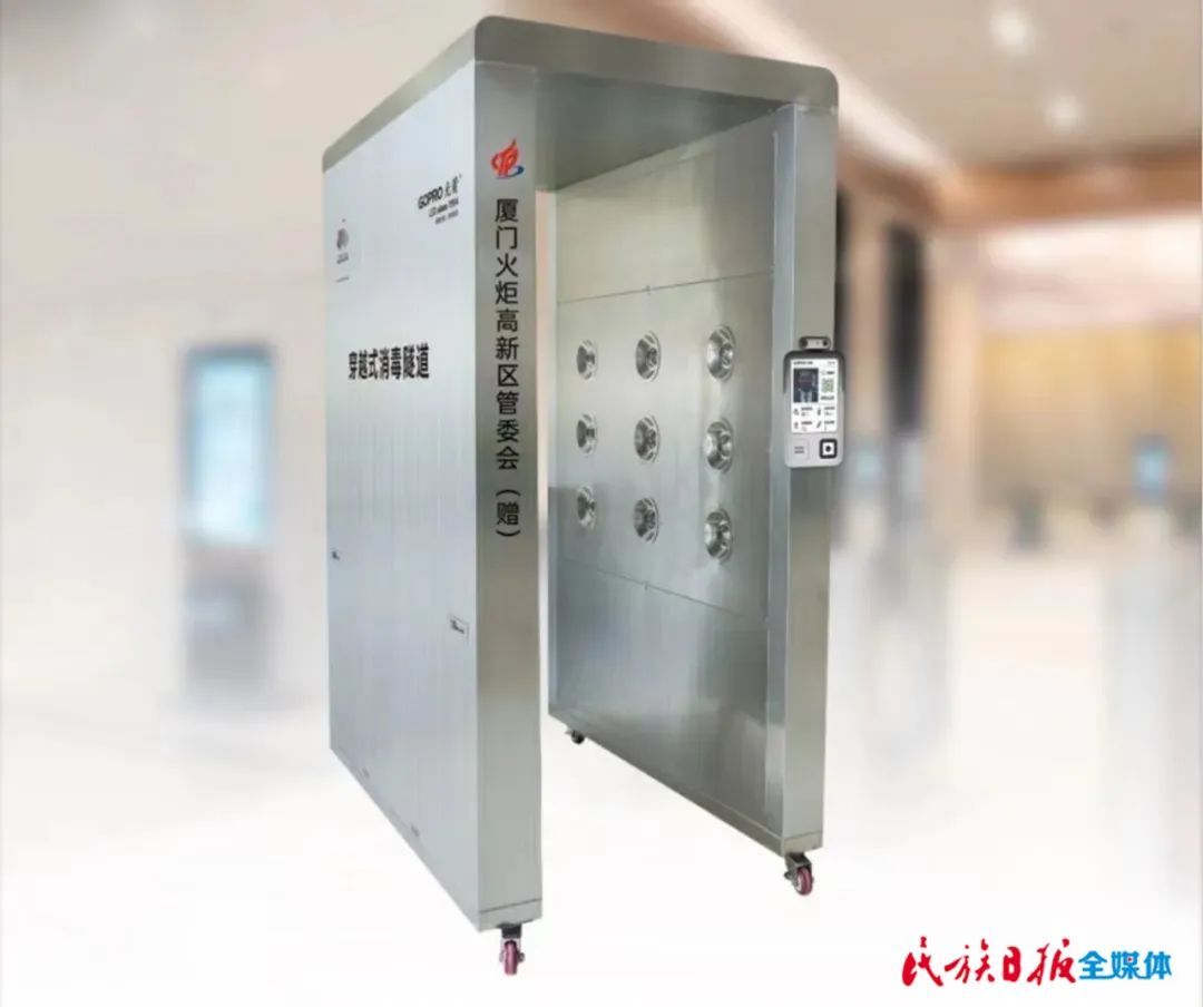 为进一步深化山海协作情谊,厦门市火炬高新区结合广河县疫情防控实际需要,精选园区企业光莆电子、安居慧云等自主研发的优秀防疫科技产品,支援广河县疫情防控工作。据了解,该批爱心捐赠物资价值近167万元,其中20台“穿越式消毒站”集红外测温、实时动态消毒、异常警报等多种功能于一体,另外20台“智能测温感应喷雾消毒门”采用高压喷雾雾化消毒剂,可以更好地接触并消杀病毒。两款产品可广泛应用于医院、学校、办公楼等人员密集区域。