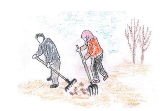 在整理文字的同时,裴爱民坚持将自己平日里用彩铅画出的图片作为书本中的插图,让这个西北地区沙漠边缘一个村庄的自然景物、农忙农闲、风土人情,变成了书本里一幅幅陌生而亲切、实在而浪漫、单纯而有趣的西北农村劳动生活画卷。