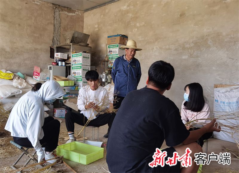 孙万仓(中间)指导学生考种。(新甘肃·甘肃日报记者 苏家英 摄)