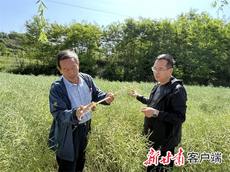 一到基地,孙万仓便带着团队成员去观察作物们的长势——用圆铲在地里翻翻,用手比比油菜的株高、根长、角果等,再捻几粒油菜籽尝尝。