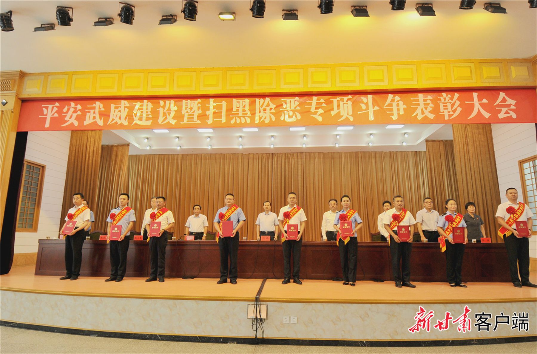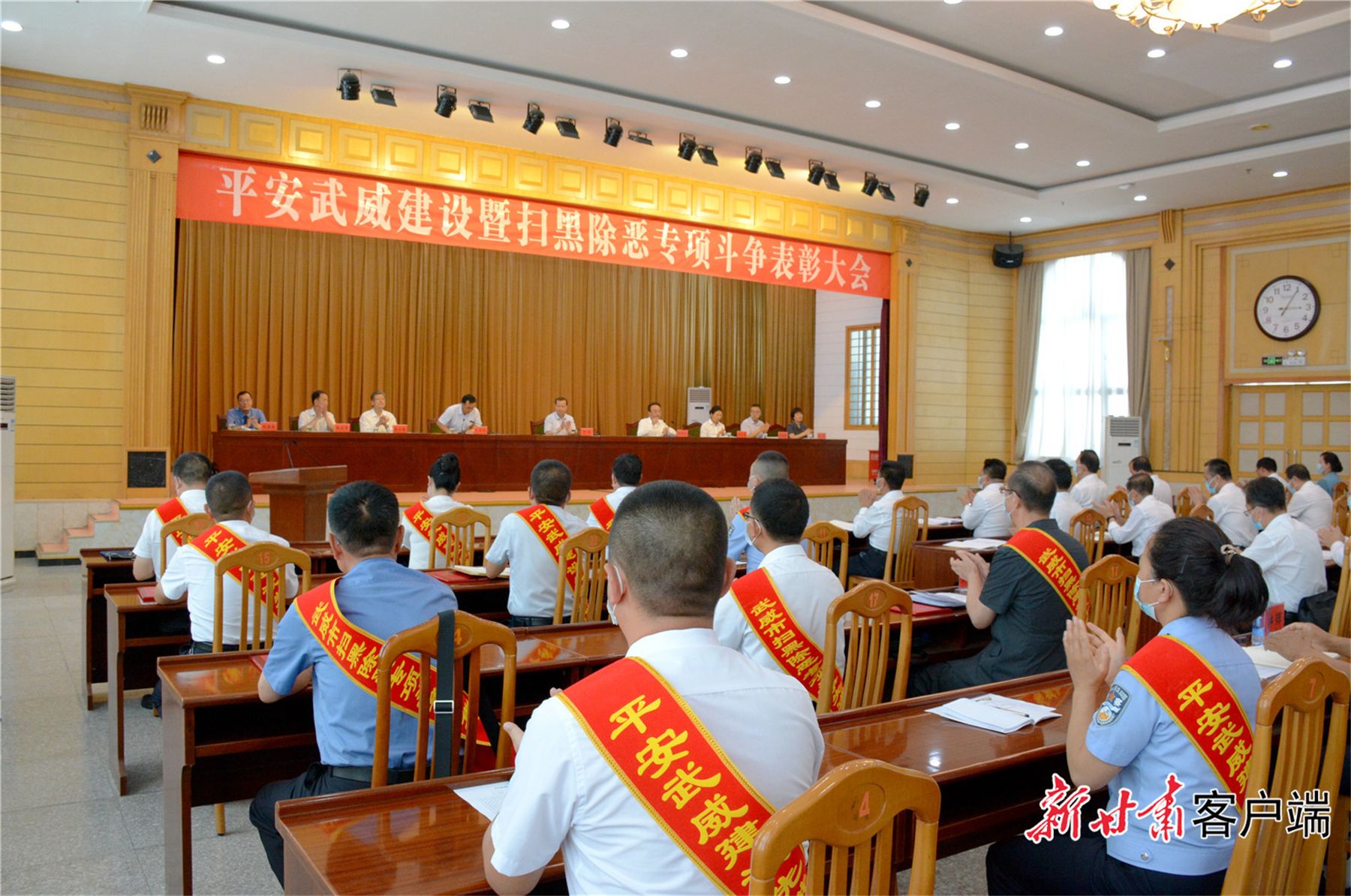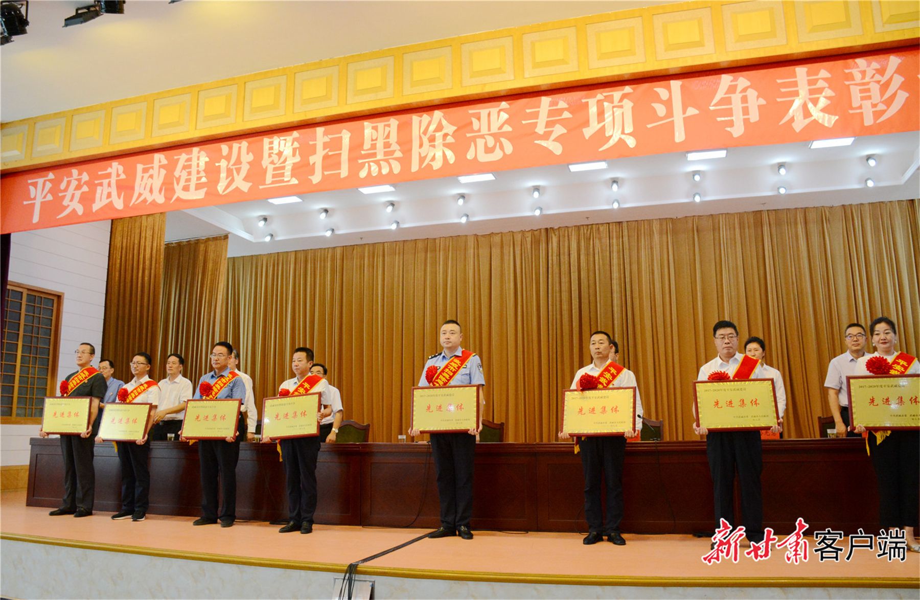 8月12日下午,武威市召开平安武威建设暨扫黑除恶专项斗争表彰大会,全面部署平安武威建设和常态化扫黑除恶斗争工作,动员和激励全市各级各方面再接再厉、顽强拼搏,全力以赴纵深推进平安武威建设。