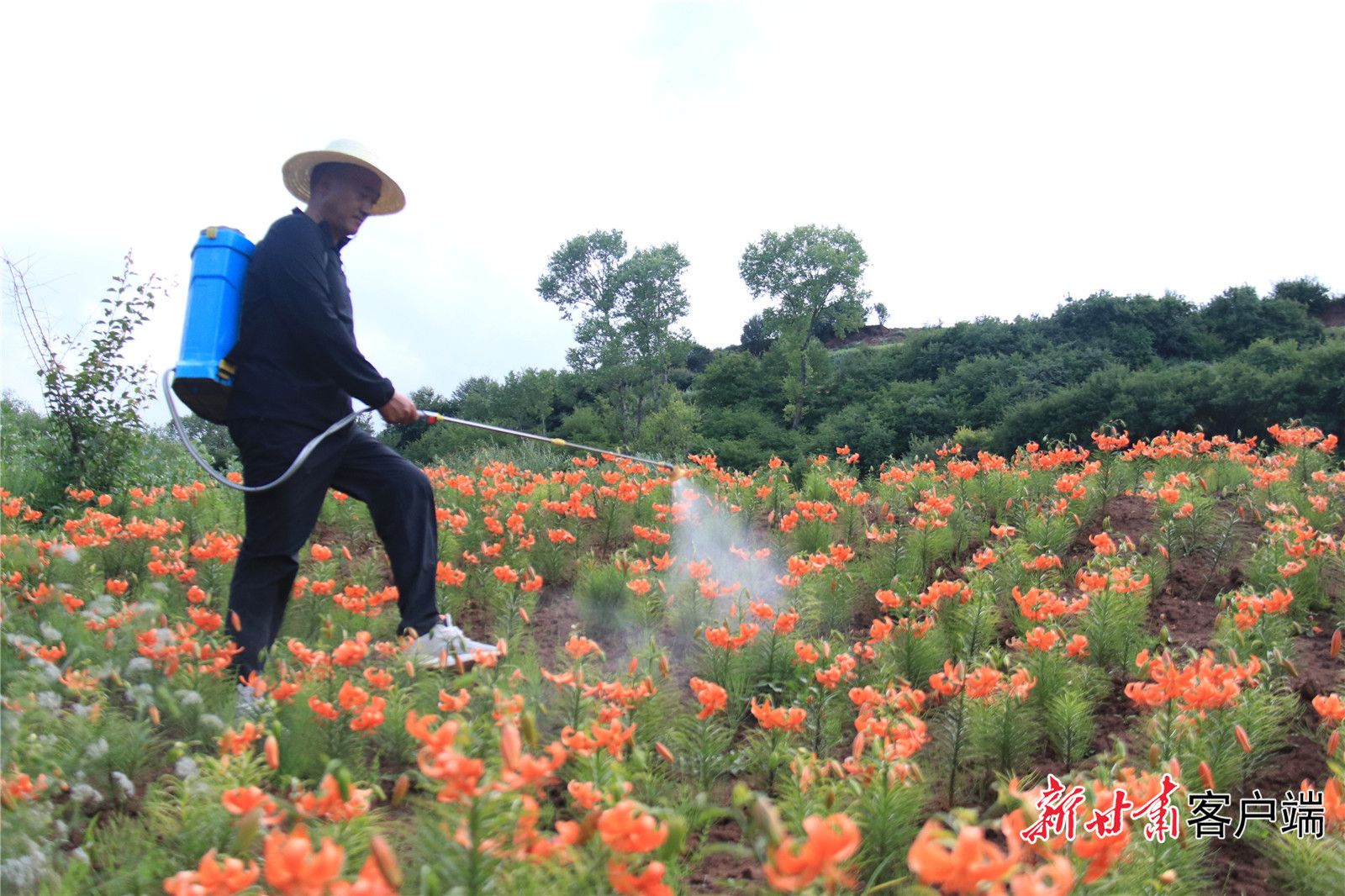 董建新在百合地忙碌。渭源县融媒体中心供图