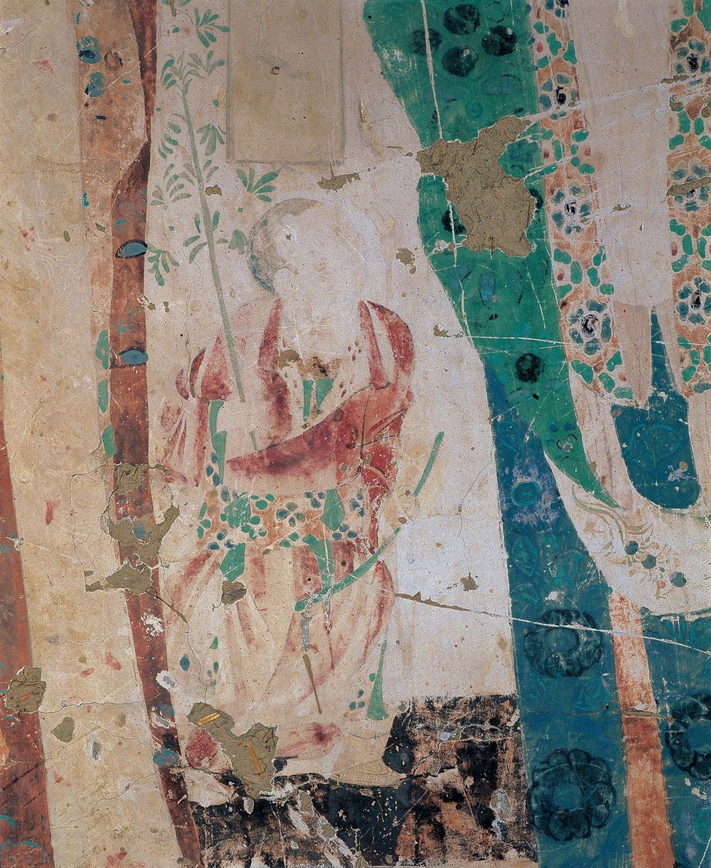 “郎骑竹马来,绕床弄青梅”出自李白的《长干行》,成语“青梅竹马”也由此而来。在莫高窟第9窟中,就有一幅古代儿童骑竹马的画面。在这幅供养人壁画中,身着花袍、足蹬平头履的童子,一手扶竹马、一手握树枝,似在赶马而行。