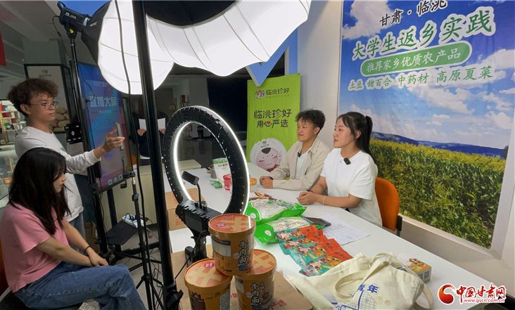 “大家好,我们是临洮县大学生社会实践小分队,欢迎来到我们的直播间!”每年7月中旬开始,定西市临洮县青年创客中心直播间都会如约开播,今年由12名返乡大学生组成的社会实践小分队准时为家乡农特产品“代言”。
