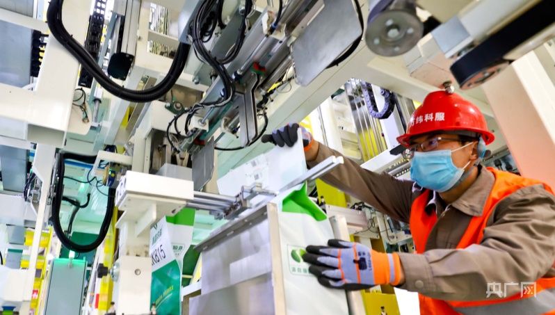 工作人员查看全自动玉米种子包装情况(央广网发 王将 摄)
