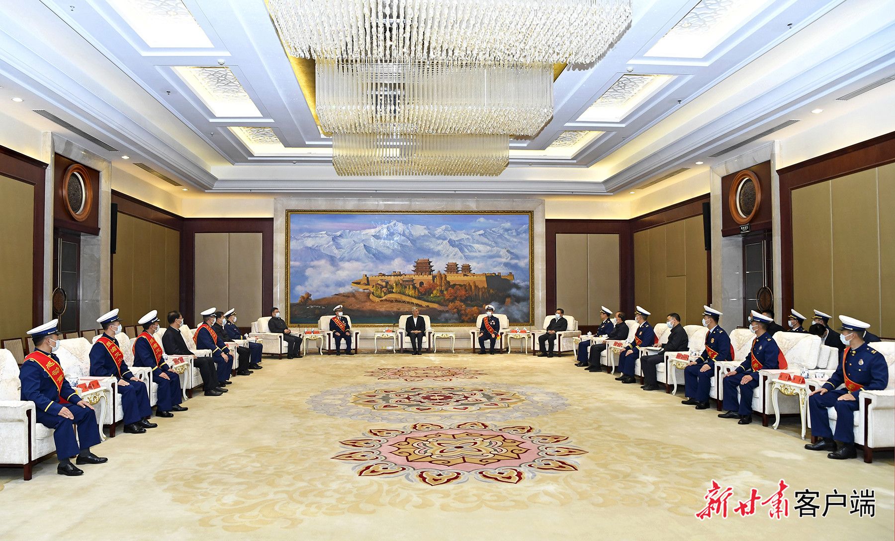11月15日上午,省委书记、省人大常委会主任尹弘,省委副书记、省长任振鹤在兰州会见了甘肃省森林消防总队援渝扑火“九战九捷”指战员代表。新甘肃·甘肃日报记者 高 樯