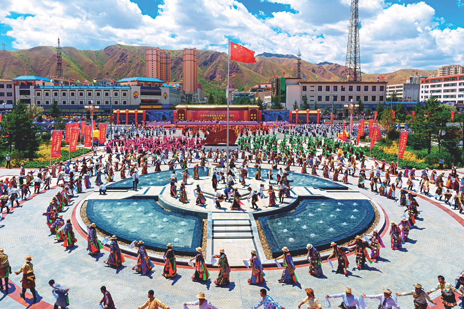 甘肃武威市天祝藏族自治县举行“欢乐藏乡·和谐天祝”万人锅庄舞表演。中共甘肃省委统战部供图