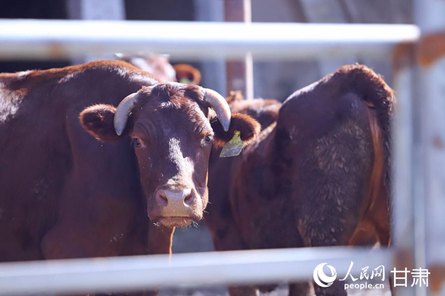 黄寨镇甘庄村的窑洞牛舍前,一头头平凉红牛毛色光亮、体态健硕。人民网记者 米媛摄